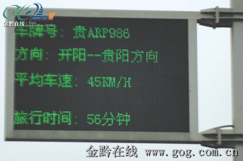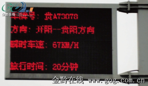 貴陽市公安交管局相關負責人告訴記者,為了對違章車輛進行及時告知并警示更多的車輛,交管局在貴開路兩端出口處分別安裝了LED顯示屏。每輛車駛出貴開路時,LED顯示屏上會顯示所駕車輛行駛方向、平均車速、旅行時間等信息,若車輛在本次行駛中有超速行為,顯示文字為紅色,同時顯示超速的瞬間車速,若無違章文字則為綠色。駕駛員可根據顯示信息對自己的行駛速度進行調整。