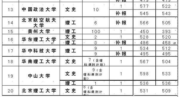 同時,昨日我省還公布當日一本預科錄取情況,20所一本院校的預科錄取中,有10所一本院校的預科計劃通過補報志愿完成錄取 (包括廈門大學、武漢大學、華中科技大學、中國政法大學、北京航空航天大學等)。貴州大學的100個理工類預科計劃通過一志愿錄滿,最低錄取分數為393分,低于今年我省的理工類“一本線”56分。 (胡穎)
