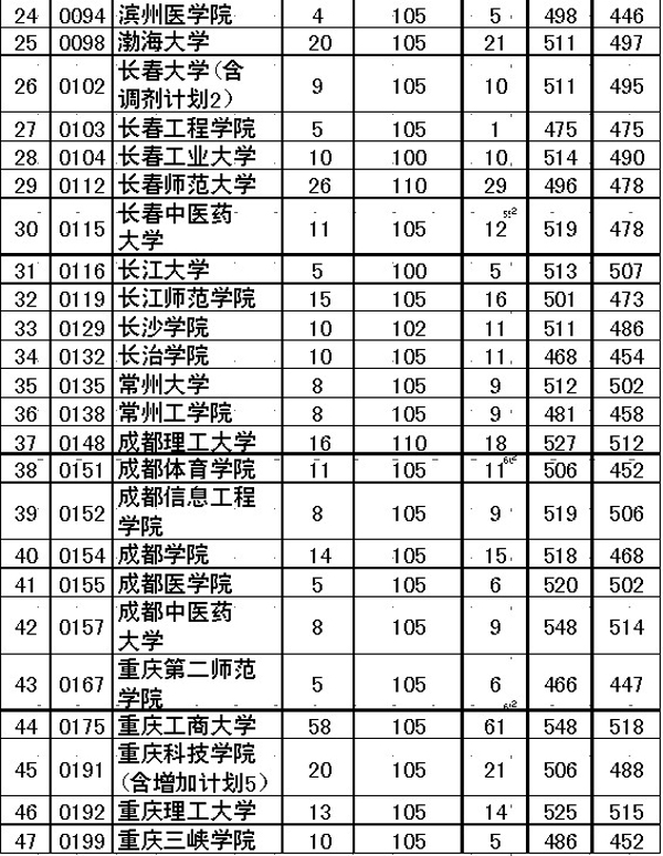 其中,在我省完成體育理科錄取的院校有3所,按志愿、按綜合分從高到低擇優錄取的有2所。其中,貴陽醫學院(計劃82人、文化最低分285分、專業最低分102分、綜合最低分259分)。