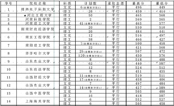 據(jù)悉,高校招生錄取工作嚴(yán)格按照教育部和省招生委員會的招生工作規(guī)定及高校在教育部陽光平臺上公布的招生章程進(jìn)行。昨日完成在黔錄取的二本院校中,天津城建大學(xué)錄取人數(shù)最多為321人(理工類、最高分534分、最低分419分)。按實(shí)際成績(不含加分)錄取的院校有2所,分別為:哈爾濱理工大學(xué)(理工類、最高分489分、最低分424分),河北工程大學(xué)(理工類、最高分465分、最低分368分)。