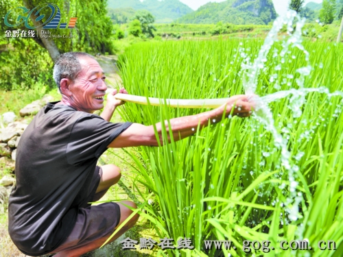 余慶縣白泥鎮民同村村民王忠誠抽取水井澆灌水稻。 賀春雨 攝
