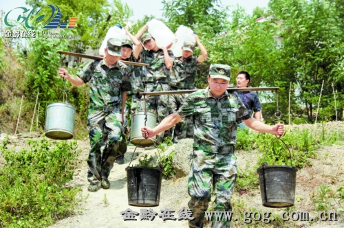 德江駐軍官兵送水進村為民解渴。 高應清 攝