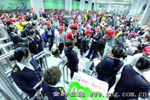 9月3日,貴陽火車站展開車廂調(diào)度協(xié)調(diào)以及運(yùn)送員工工作,9月4日將所有工作組織到位,決定加開列車護(hù)送富士康員工。貴陽火車站一負(fù)責(zé)人說,來貴州投資的公司,當(dāng)然應(yīng)該做好服務(wù)。貴陽火車站在加開專列的基礎(chǔ)上,還開設(shè)了兩個綠色通道,騰出專用候車室,保證員工運(yùn)送順利進(jìn)行。