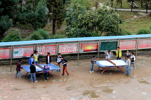 圖為貞豐縣平街中學鄉(xiāng)村少年宮一群學生正在練習乒乓球