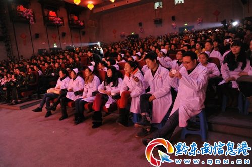 2月6日晚20點,鎮(zhèn)遠(yuǎn)劇場人聲鼎沸,座無虛席,來自全縣機(jī)關(guān)、部隊、群眾代表及演員500余人現(xiàn)場觀看演出,同時,鎮(zhèn)遠(yuǎn)縣廣播電視臺對晚會進(jìn)行了現(xiàn)場直播,中共鎮(zhèn)遠(yuǎn)縣委書記劉建新,縣委副書記、縣長羅杰,縣人大主任朱鳴等縣四大班子領(lǐng)導(dǎo)及縣離退休老領(lǐng)導(dǎo)出席觀看演出,來自全縣200余名演員參加了演出。