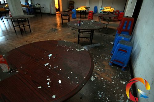 據了解,垮塌的樓房為四層,一層是酒樓廚房,另還有部分租住戶。二樓為餐廳,三樓是住房,四樓為空房,空蕩蕩的。事發時,三樓也受到殃及,所幸這里無人居住,所以未造成人員傷亡。四樓在事發后滿地狼藉,木頭、轉頭、木質板壁散落一地。(何昌華 攝影報道)