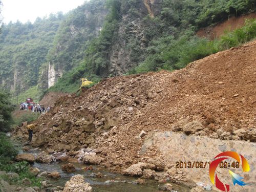 據了解,此次繃陷的主要誘因初步推斷為自然地質災害。由于前期降雨量大,地質松軟,雨水長時間滲透,當上面土石的重量所形成的壓力與下方土石方的阻力達到臨界值時就會發生繃塌。據悉,此次繃塌長約100米,土石方約1萬余立方,搶險隊正采取在公路兩側同時施工的方法進行清理。目前,2臺挖掘機和10余臺工程車正在有條不紊地進行施工,由于所清理的土石方堆填路程較遠,工程車輛來回時間長,預計21日上午通車。(秦書超)