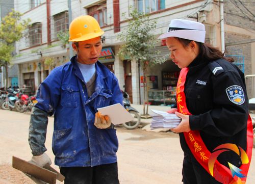 近期,鎮遠縣人民政府為完善創建省級文明縣城、創建全國衛生縣城的硬件設施,斥資1.8個億對城區9.33公里道路進行改造,四鄉八鎮的農村群眾紛紛利用冬閑時節進城務工參與改造,而鎮遠縣公安局交警大隊也抓住時機,組織宣傳民(協)警深入到建筑工地開展交通安全宣傳,為農民工講解道路交通安全法律法規、安全出行常識等內容,與他們一道共建和諧美麗家園,受到一致好評。(龍冠宇)