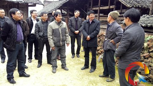 縣委書記吳明(右三)深入一類貧困村慰問貧困群眾