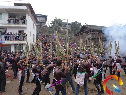 1月8日,從江縣雍里鄉滾玉村蘆笙堂炮聲隆隆,人山人海,當地群眾吹響蘆笙,喜迎新年的到來。活動引來周邊村寨的群眾紛沓而至,大家歡聚一堂,載歌載舞,共同慶祝苗族同胞一年一度的傳統節日——蘆笙節。