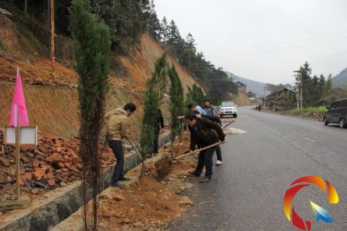 3月12日,貴州從江縣的氣象工作者在321國道從江路段積極參與縣委、縣政府組織的義務植樹活動。