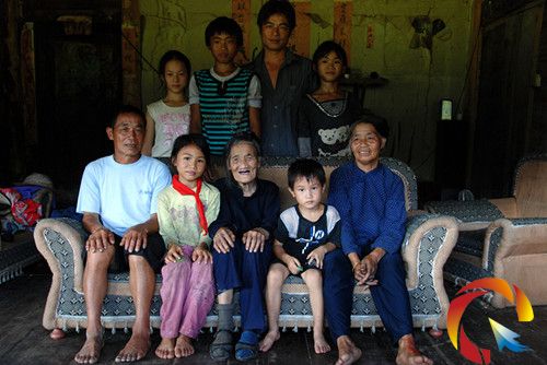 從江縣雍里鄉大洞村百歲壽星奶寧盛娥全家福(楊儀波 攝)