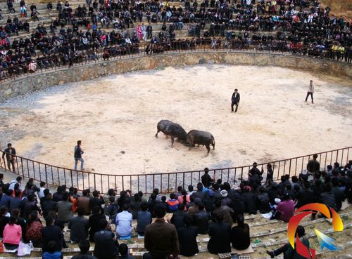 本網訊 4月27日,從江縣高增鄉高圣斗牛堂人山人海,一場精彩激烈的民間傳統斗牛賽讓觀眾一飽眼福。