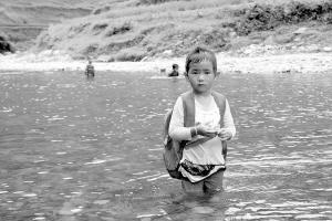 她叫黃連花,今年6歲了,由于住在河邊,和小伙伴們渡河早已司空見慣。對于這里的孩子來說,能渡河按時到校上學,已經是很幸運的事情了。