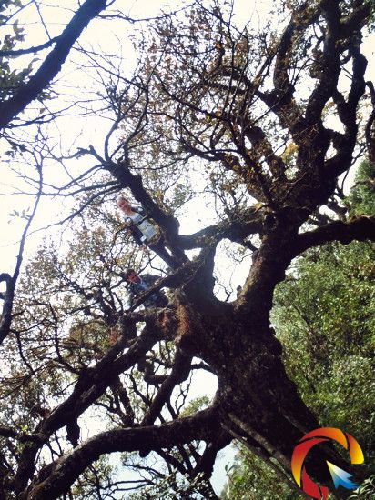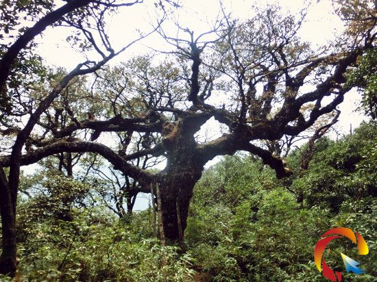 據(jù)了解,千年古樹名叫水金剛,樹高有5米,樹枝向四面伸展,樹葉一年四季沒有脫落。若你從遠處望去,像把大雨傘矗立在太陽山頂上,吸引了不少外面游客前來觀看。(蒙海波)