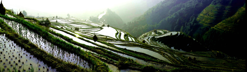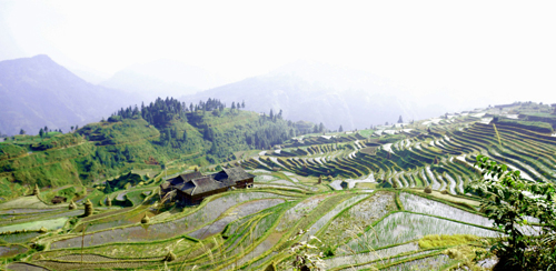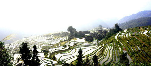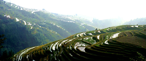 本網訊 11月10日,立冬剛過幾天,位于從江縣西部的加榜梯田,豐收過后,留下一片一片空蕩蕩的田地,靜靜地躺在崇山峻嶺之中。當注滿水的梯田在陽光照耀下,如鏡的水面波光粼粼,遠遠望去,宛如一條條銀帶纏繞。(梁懷全 攝影報道)