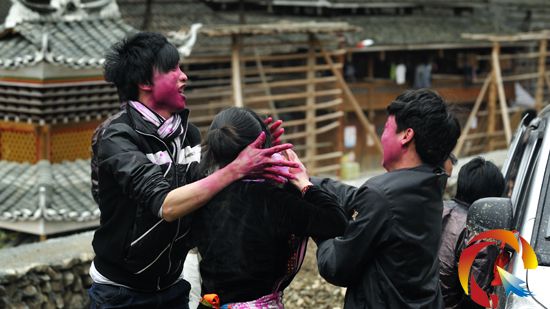 侗寨吃相思打花臉(張琪 攝)