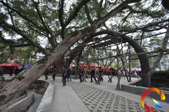 據從江縣林業部門介紹,這株斜著長的古榕樹高度為20米左右,胸徑238公分,已有960歲高齡,生長于北宋年間,因為是斜著長,影響了它的高度。現今,這株古榕樹已經成為了從江鼓樓廣場重要的景觀樹之一,也是從江縣域內榕樹中的“老壽星”。鑒于它的重要性,從江縣林業局此前已將其列為一級保護植物掛牌保護,但是從江縣委、政府的領導還是放心不下,遂于今年9月份特批一筆資金,建拱橋對樹干進行支撐,以排除安全隱患。(劉宇亭)