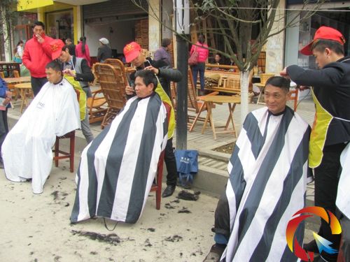 另一邊,至尚美發(fā)連鎖店團支部的志愿者們支起的理發(fā)攤子,也在大家的簇擁下開起了張。免費理發(fā),還外加護理,讓不少群眾都來湊起了熱鬧。
