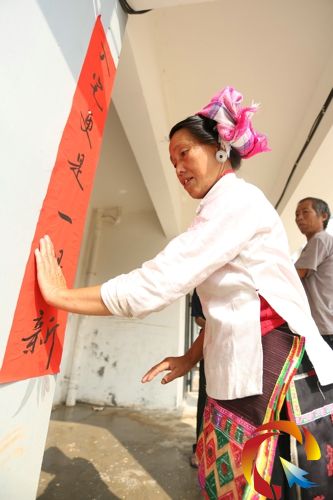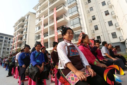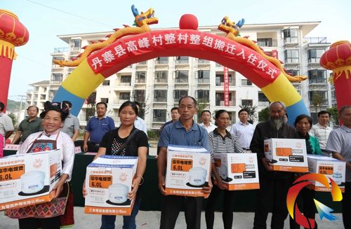 排調(diào)鎮(zhèn)高峰村村民在整村整組搬遷入住儀式上領(lǐng)取紀(jì)念品
