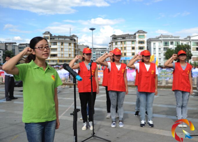 志愿者代表在創(chuàng)建活動(dòng)現(xiàn)場(chǎng)進(jìn)行宣誓