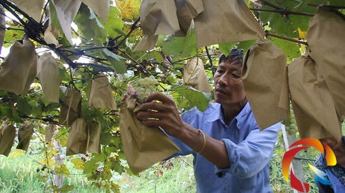 莫興文和老伴在自己的荒地上種了三畝的葡萄,從平整土地到挖水渠,從架苗到套袋。如今,葡萄架下,一串串色澤鮮亮,顆粒飽滿的水晶葡萄,成了莫老美好未來的希望,雷山、都勻等周邊縣市的水果商家也聞味前來訂購。