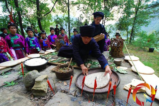 為做好今年祭尤節(jié)的各項(xiàng)準(zhǔn)備工作,揚(yáng)頌村全體上下早就忙活開(kāi)了。“祭尤節(jié)那天,祭尤壇祭品的擺設(shè),一壇甜酒,一壇白酒,九塊粑粑,另加一塊大的八斤(市斤)糯米打制的牯子粑。”作為揚(yáng)頌村的“一份子”,該縣民宗局黨組書(shū)記、局長(zhǎng)龍啟堂還擔(dān)任起了祭尤節(jié)活動(dòng)的“總調(diào)度”,幫助大家細(xì)分祭尤節(jié)當(dāng)天的任務(wù),提醒注意事項(xiàng)。