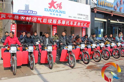 1月14日,黃平縣舉行農村沼氣后續服務摩托車發放儀式,現場為20個農村后續沼氣服務網點配發了20輛150型大陽摩托車,以解決各服務網點技術人員對病、漏沼氣池出診難的問題,提高各沼氣服務網點的服務能力,確保農村沼氣池的正常使用。(楊林 彭忠)