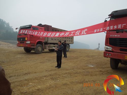 沒有氣球禮炮,沒有紅地毯,沒有鼓樂隊(duì),也沒有司空見慣的禮儀小姐,3月13日,在現(xiàn)場來賓熱烈的掌聲中,黃平縣第一季度總投資31億元的30個(gè)重點(diǎn)項(xiàng)目集中開工儀式在該縣新州鎮(zhèn)二橋至水泥廠項(xiàng)目點(diǎn)舉行。