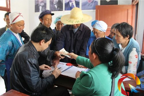 野洞河鎮(zhèn)工作人員正給村民退回假稻種款現(xiàn)場