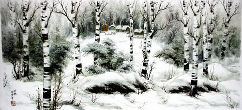 孫洪興對(duì)故土的深情使其作品極具感染力。談起他繪畫的白樺林、大興安嶺、冰雪、山水畫等題材時(shí),孫洪興說:“我比較喜歡安靜,對(duì)美景非常喜歡,所以選擇的都是比較安靜、溫順的大山大水。我在學(xué)校教學(xué)的時(shí)候,一年四季不斷的在外面寫生,好多的素材都來自于大自然。通過寫生與通過想象畫出來的畫是完全不一樣的,大自然的鬼斧神工是人們難以想象的,所以畫真實(shí)的景色是我比較喜歡的。”正如孫洪興所說,他的冰雪油畫飄逸秀雅、虛淡恬靜,給人一種人間仙境之感。這種美是畫家內(nèi)心世界的真實(shí)反映,也是孫洪興對(duì)東北故土熱愛一種表達(dá)。