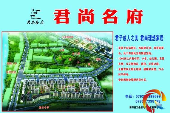 婺源縣萬疊地產開發有限公司開發的樓盤--君尚名府,三面環山,一面環水,宜居宜家,盡在君尚!君尚名府,坐落火車站新區,隆重推出購1000元VIP卡抵一萬,預交五萬贈送VIP卡一張,并可立即選房號。高鐵的即將開通使高鐵沿線站點的優質房產成為置業市場新的置業熱點。其中,君尚名府以其臨近火車站區,更是受到廣泛眾多投資置業者的關注,君尚名府有望成為婺源樓市下一波引爆點。