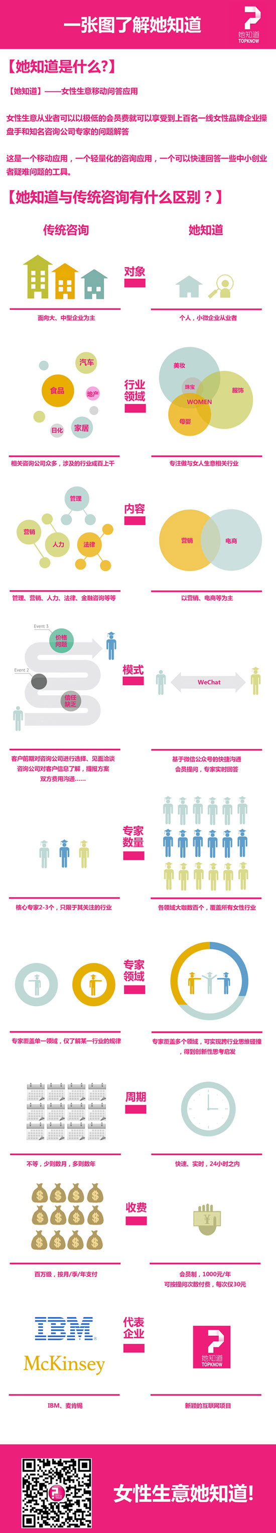 【她知道】女性生意移動問答應用,聚合女性消費領域的專家和操盤手,為用戶提供快速的點撥式回答。微信公眾號:topknow。目前采用會員制收費,1000元/年,可提問36次。會員也可付費指定專家、加速回答。專家除每次解答可獲得一定收入外,還可發起和參與優質項目的眾籌,以及線上線下的各種交流活動。專家入駐詳情咨詢可聯系江矩斌先生,手機:136-3224-1639,微信號:benjiang07。