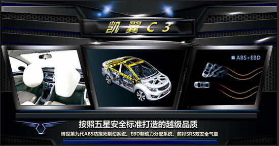 從參數(shù)配置表可以看出,凱翼C3將搭載ABS防抱死制動(dòng)系統(tǒng),配以EBD制動(dòng)力分配系統(tǒng),剎車更加穩(wěn)定,保障了車輛在行駛過程中的穩(wěn)定性和安全性。凱翼C3前排SRS雙安全氣囊、駕駛員側(cè)安全帶報(bào)警提醒裝置、前座三點(diǎn)限力式安全帶、后座三點(diǎn)式安全帶、倒車?yán)走_(dá)、高清可視泊車系統(tǒng)等的運(yùn)用,將為凱翼C3提供可靠的主動(dòng)、被動(dòng)安全。