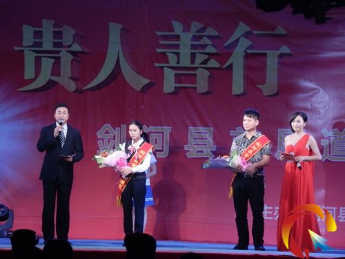 本網訊 4月18日晚,在劍河縣首屆道德模范頒獎晚會現場,2名見義勇為人員被評為“貴人善行·最美劍河人”。