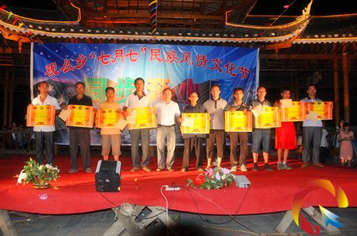 “七月七”民族文化節活動內容有表彰鄉產業扶貧誠信戶、籃球、民歌、斗鳥、廣場舞等五項。經過三天的角逐,各個參賽隊都發揮出自己最好的水平,最后經評委們評選出了一、二、三名,并對他們進行了頒獎。同時鄉黨委政府對該鄉評選出的12名產業扶貧誠信戶進行了表彰。