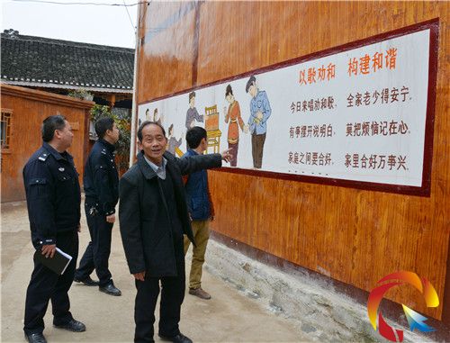 當(dāng)?shù)卮迕癜鸭伞⒌赖潞投Y儀為一體的村規(guī)民約刻在了“勸和碑”上,而“勸和墻”上除了有勸和文字,還有村民們和諧相處,互敬互愛(ài)的圖案。