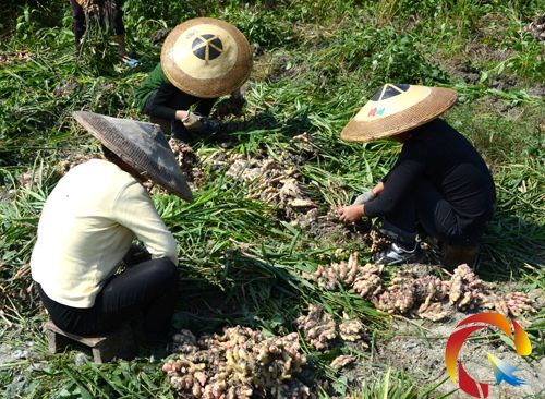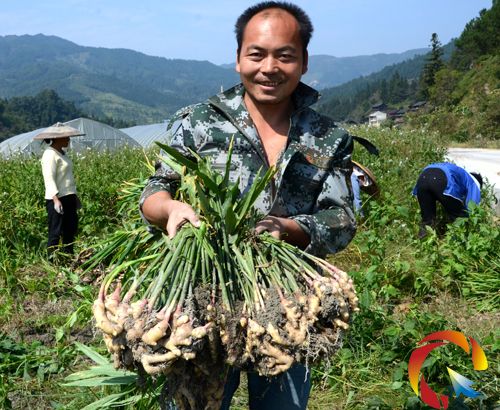 連日來,大姜進入收獲期,貴州錦屏縣各鄉(xiāng)鎮(zhèn)村民抓住晴好天氣正在田地里收獲大姜。受種植面積縮減等影響,今年大姜價格大漲,種植戶出姜熱情高漲。據(jù)當?shù)亟r介紹,生姜經(jīng)濟效益可觀,有“一年姜十年谷”之說。今年,該縣生姜產值預計1億元。(李斌)