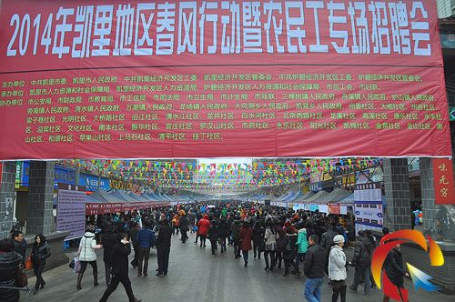 2月12日,凱里地區2014年春風行動暨農民工專場招聘會在凱里市二商場舉行。招聘會上153家用工單位提供的5310個就業崗位吸引了上萬人前來求職。
