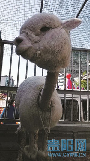 昨日,在凱里萬博廣場(chǎng),某企業(yè)做商演活動(dòng)時(shí)請(qǐng)來一只被稱為網(wǎng)絡(luò)“神獸”的羊駝到場(chǎng)助陣。羊駝的出現(xiàn),的確“萌”翻了眾多市民,市民圍觀之時(shí)紛紛拿出手機(jī)拍攝。約90%以上羊駝生活在南美洲的秘魯及智利的高原上,其余分布于澳洲。羊駝性情溫馴,伶俐而通人性,適于圈養(yǎng),以吃草為主。(吳如雄)