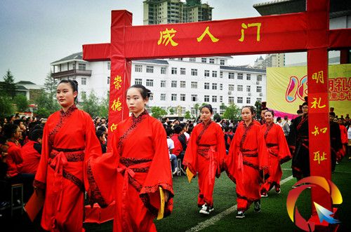 參加成人禮的同學(xué)攜手過成人門