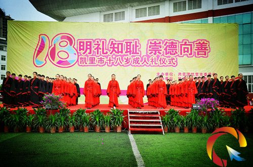 據(jù)了解,凱里市2014年“明禮知恥·從德向善”成人禮由共青團(tuán)凱里市委員會(huì)主辦,凱里一中校團(tuán)委承辦。凱里市有關(guān)領(lǐng)導(dǎo),80位學(xué)生代表家長(zhǎng)以及3000多名學(xué)生共同見證了這場(chǎng)莊重的成人儀式。