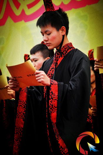 活動(dòng)現(xiàn)場(chǎng),老師給男女學(xué)生代表進(jìn)行了“冠笄之禮”,冠禮即是跨入成年人行列的男子加冠禮儀,《禮記》云:“夫禮,始于冠”、“男子二十,冠而字”。與男子的冠禮相對(duì),女子的成年禮叫笄禮,也叫加笄,由女孩的家長(zhǎng)替她把頭發(fā)盤結(jié)起來,加上一根簪子。