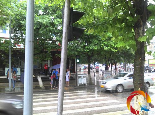 現場,原本正面指示路人的紅綠燈轉了90度,對著左邊過來的車道。人行道上無法清晰確認是否可以安全過街,而該路口的行人和車流量都比較大,的確存在安全隱患。