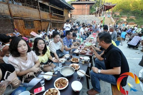 本網訊 8月29日,凱里市三棵樹鎮烏利村廣場上人聲鼎沸,非常熱鬧。這一天,當地村民宰殺了兩頭大肥豬,擺下長桌宴,迎接到該村進行旅游開發的外地老板。
