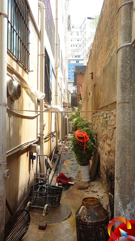 記者注意到,該店位于一棟沿街綜合樓一層,后墻窗戶距離地面有2米多高,窗戶下面是一條被堵死的狹窄小道,并有近4米的高墻包圍,而高墻后則是一個小型停車場。