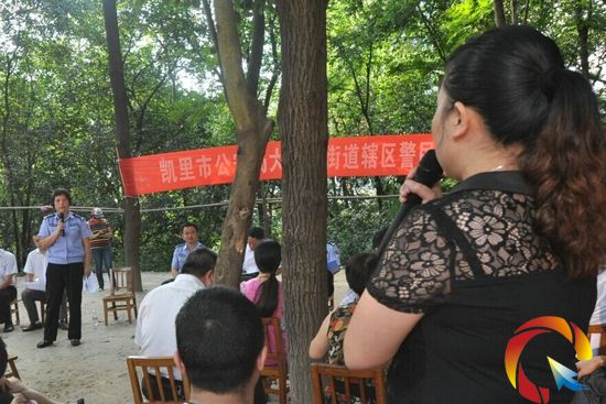 值得一提的還有舉辦問政活動的地點——-凱里蘋果山,這里綠樹成蔭,很涼爽,警方的工作人員告訴記者,像這樣的活動需要在廣場開展才有意義,但露天廣場太陽直射,效果不好,所以就到蘋果山廣場舉行,這里是“綠蔭廣場”,有樹木遮擋陽光。