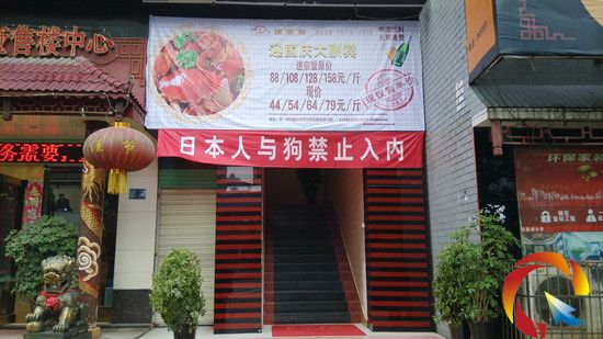 本網訊(記者 劉承宇) 29日,有網友向記者反映,在凱里某店鋪門頭上掛著一幅“日本人與狗禁止入內”的橫幅。“國慶快到了,這家店刮出這樣的橫幅挺贊的!”網友謝先生在電話里表示。對這個條幅,路人也褒貶不一。
