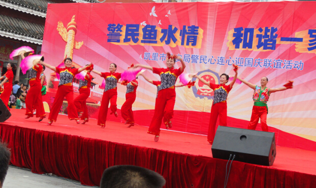 演出活動,以凱里市公安局文藝組表演的《民族健身操》開始,來自黔東南州歌舞團(tuán)的男生獨(dú)唱《今天是你的生日,祖國》把整個演出推向高潮;凱里市公安局交警大隊(duì)的《交警手勢操》,表演動作整齊劃一、行業(yè)性技能高,讓不少觀眾拍手稱贊;整個文藝表演,在一曲優(yōu)美動聽的女生獨(dú)唱《紅旗飄飄》中圓滿落下帷幕。(楊叢源)
