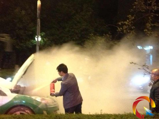 據市民王先生介紹,當他下班路過州醫院門口時,發現一輛出租車停放在路邊,且車子的引擎蓋正冒出陣陣濃煙,司機正在拿滅火器滅火。